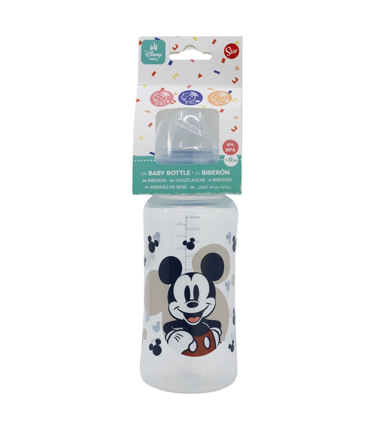 BABY 12 OZ WIDENECK BOTTLE SILICONE TEAT 3 POSITIONS MICKEY MOUSE FULL OF SMILES