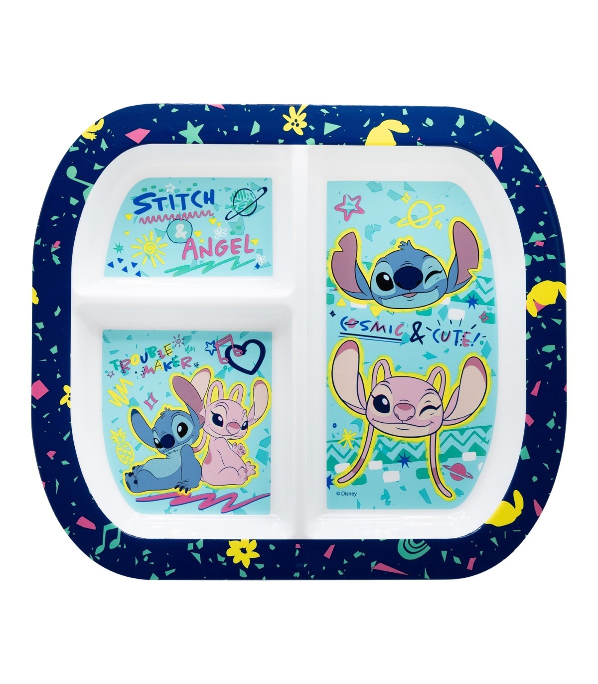 Children's plastic plate with 3 compartments.