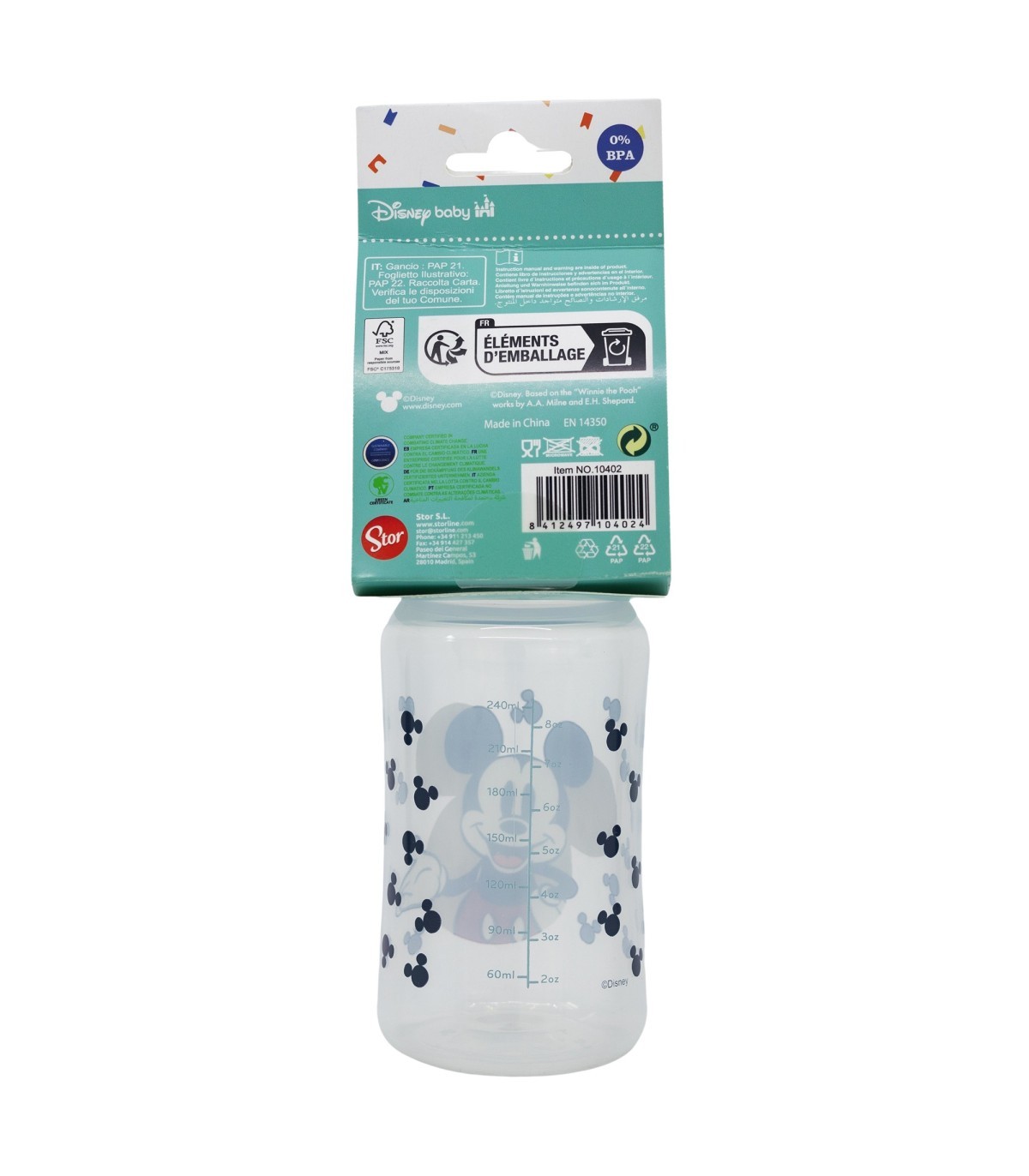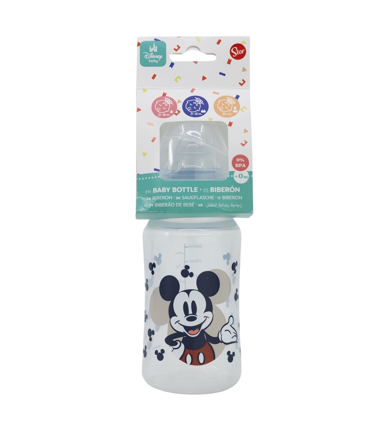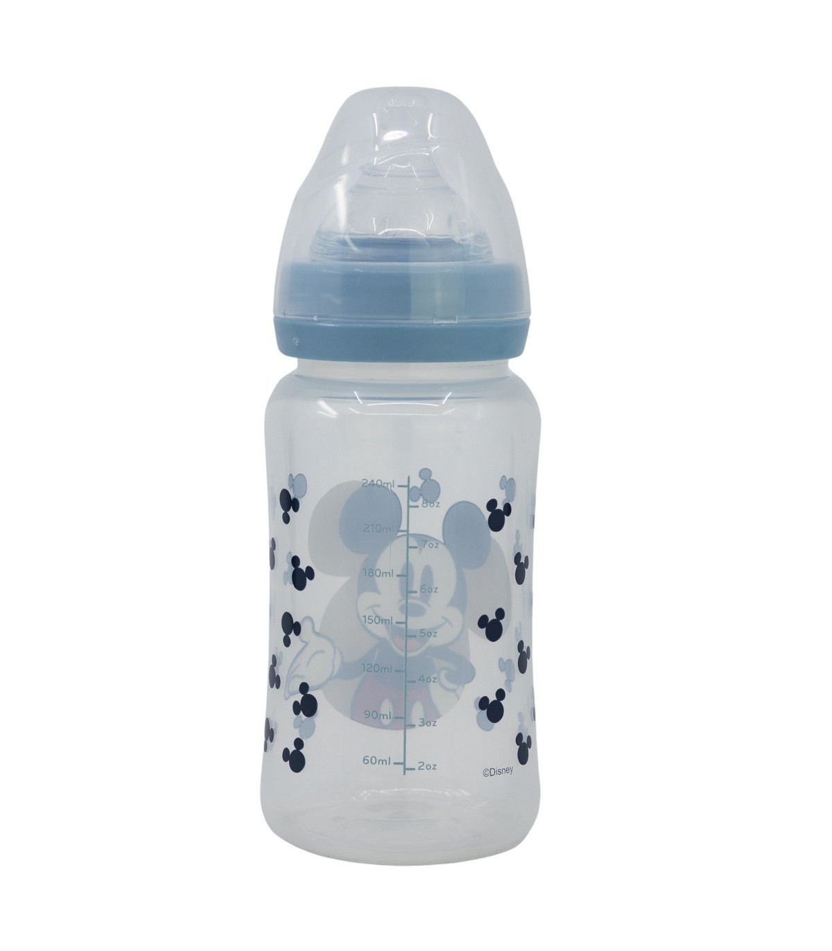 BIBERON CUELLO ANCHO 240 ML TETINA SILICONA 3 POSICIONES MICKEY MOUSE FULL OF SMILES