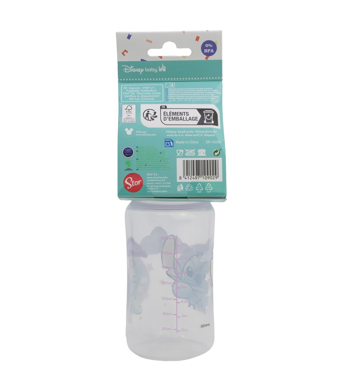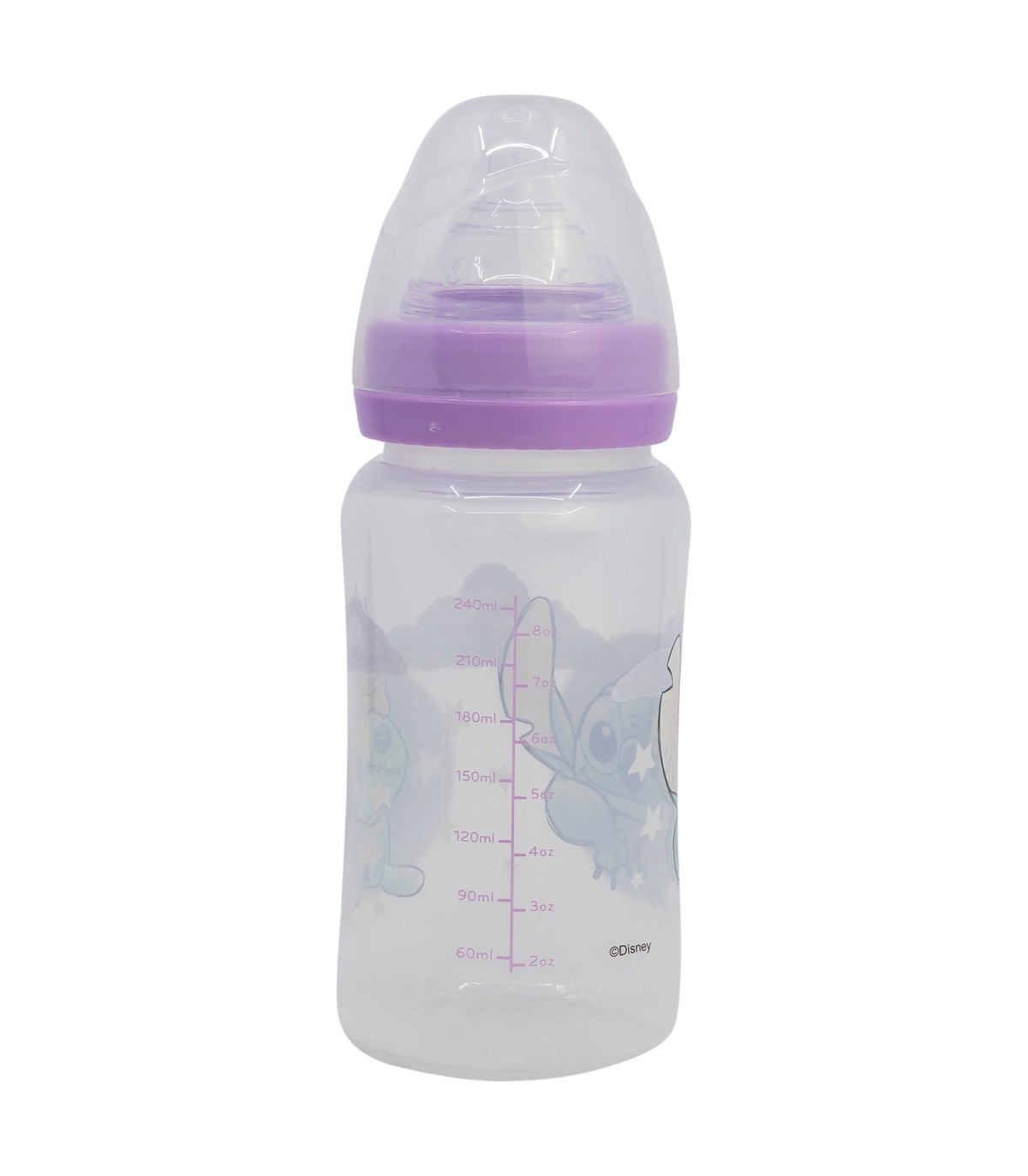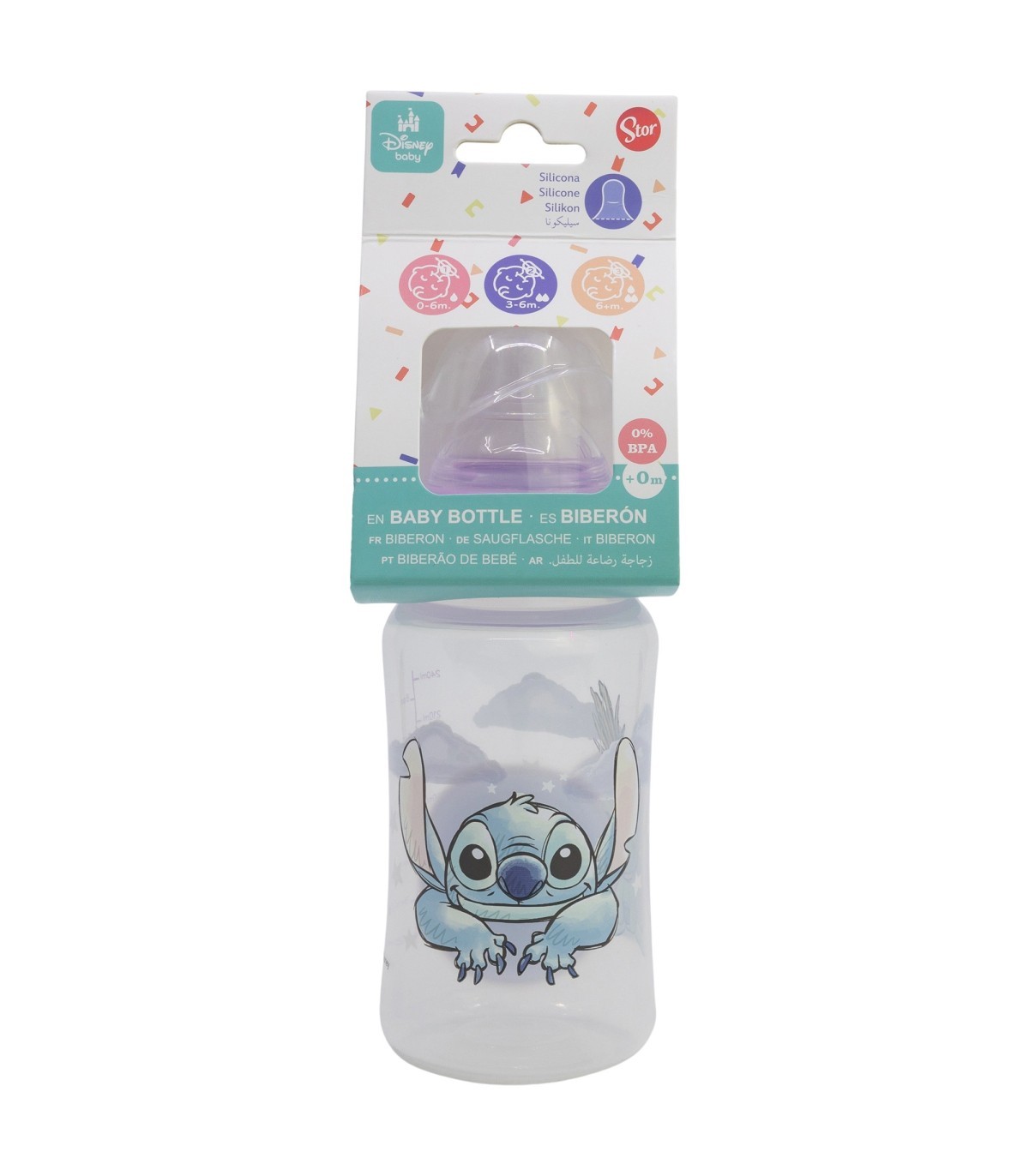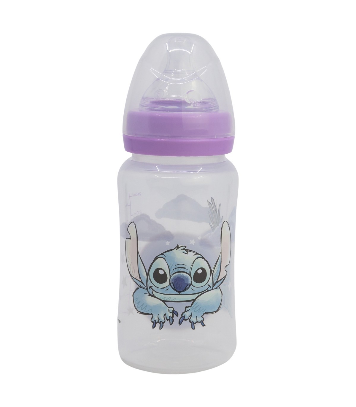 BIBERON CUELLO ANCHO 240 ML TETINA SILICONA 3 POSICIONES STITCH CUDDLE ME