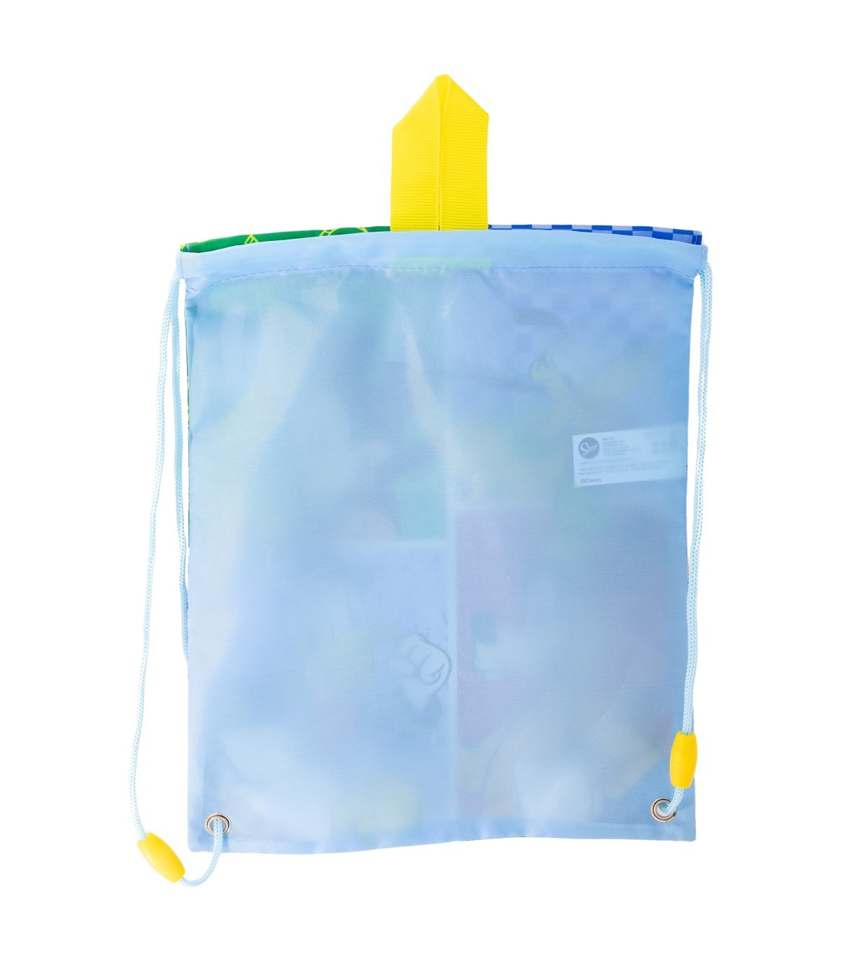 Práctica bolsa de tela con asas y cierre mediante cordones, decorada con atractivos diseños con algunos de los personajes infantiles favoritos de los más pequeños.