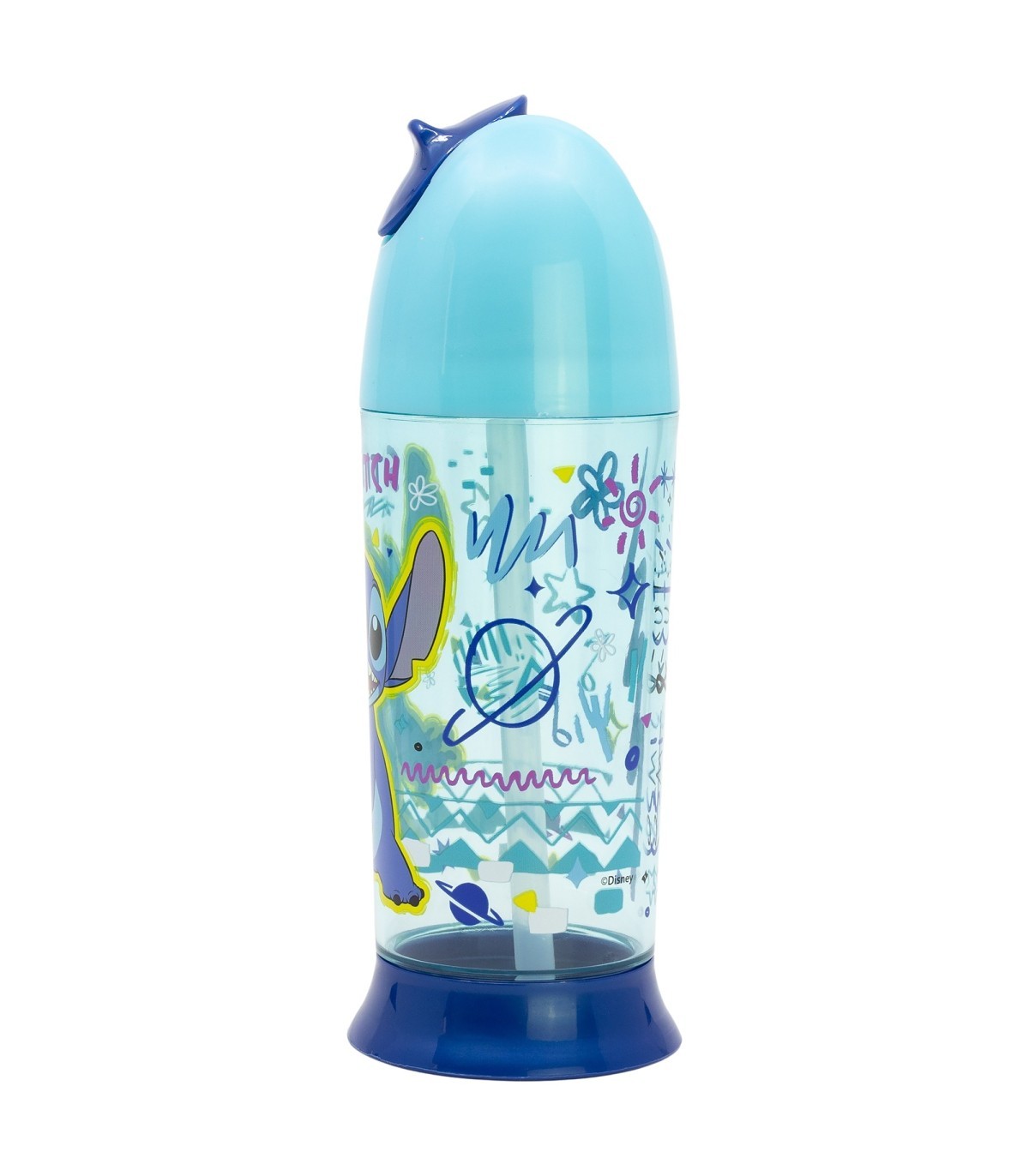 Botella de agua infantil de plástico de 280 ml tapón y pajita de silicona Stitch