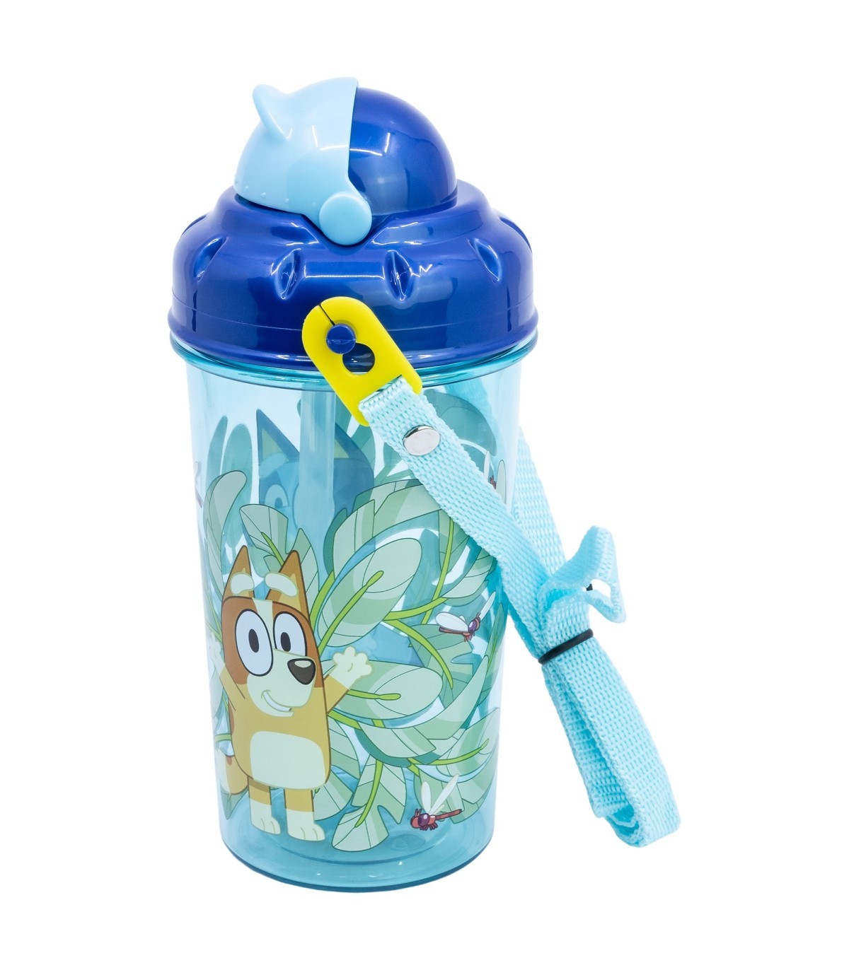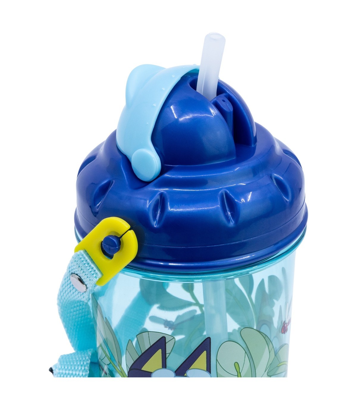 Botella infantil de plástico con pajita, tapa correa de 465 ml de Bluey