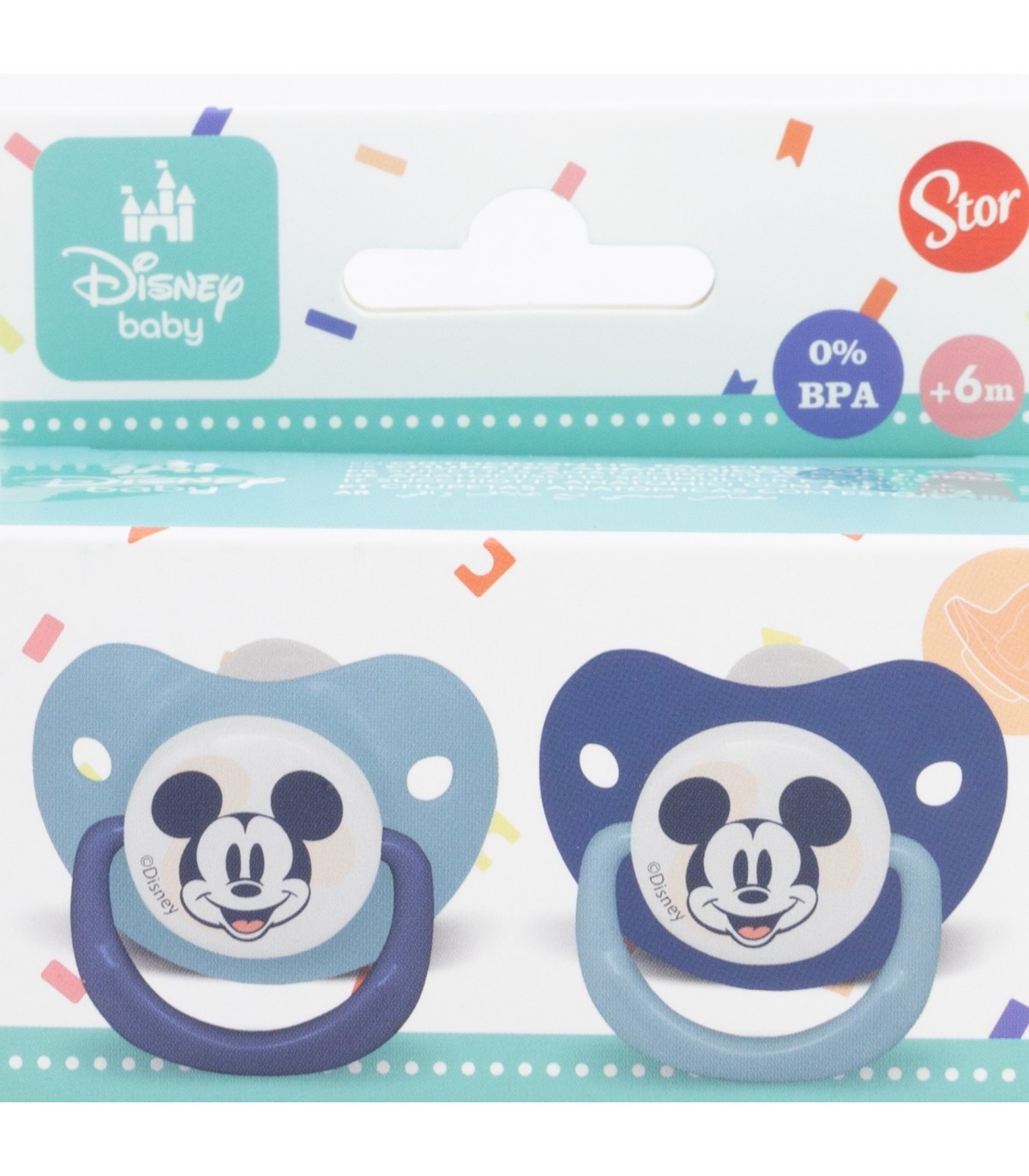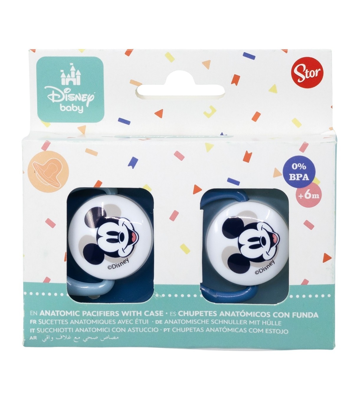SET 2 CHUPETES TETINA ANATOMICA SILICONA +6 M CON FUNDA MICKEY MOUSE FULL OF SMILES