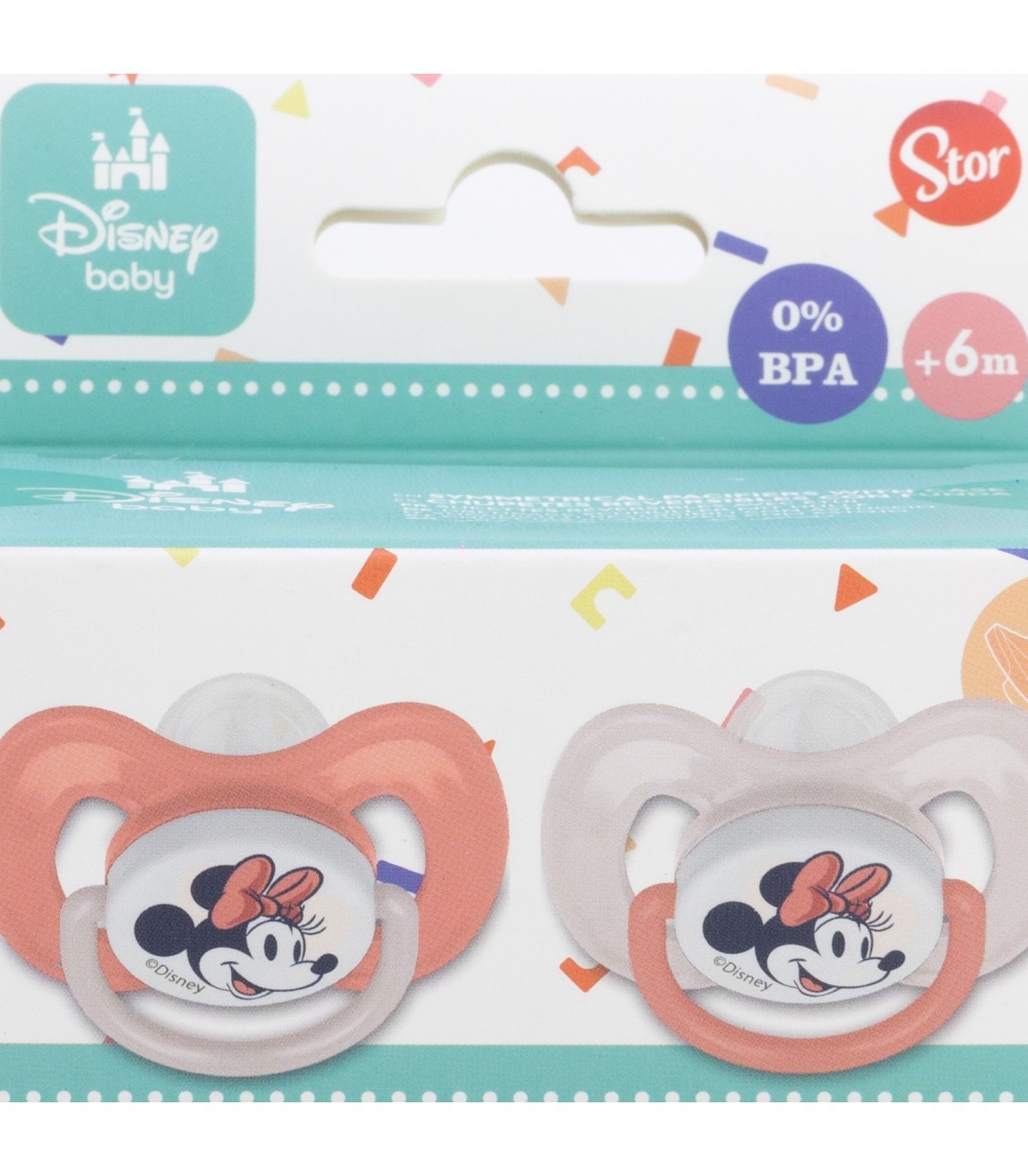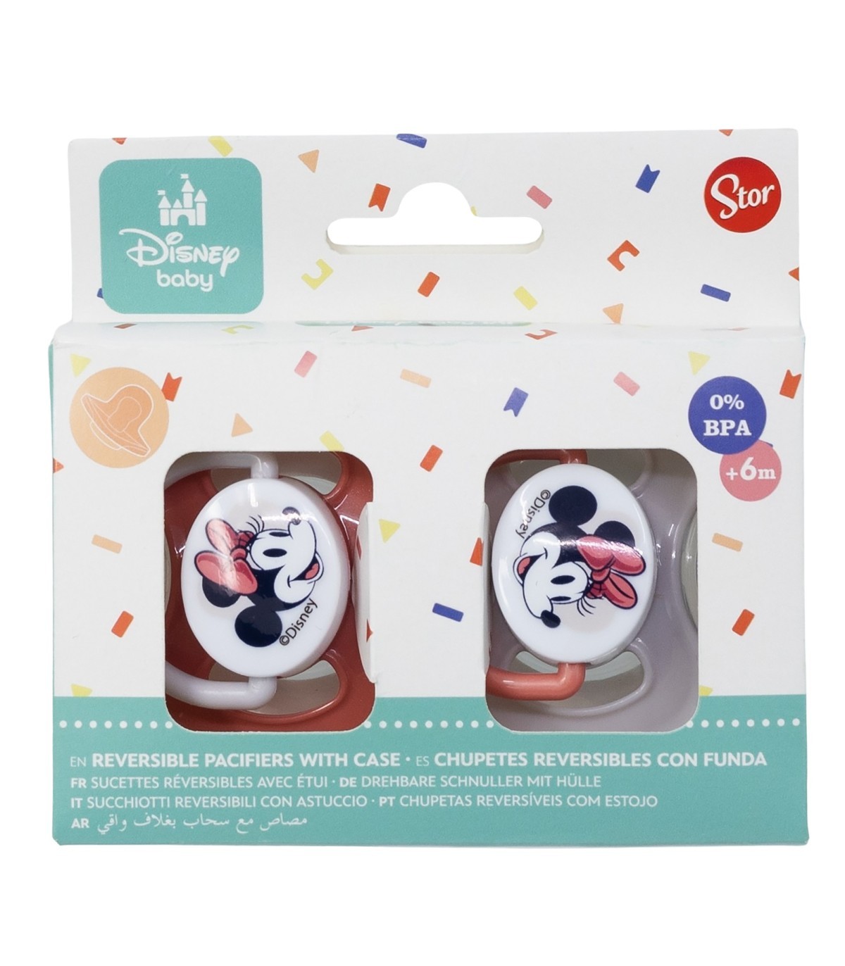 SET 2 CHUPETES TETINA REVERSIBLE SILICONA +6 M CON FUNDA MINNIE MOUSE HEART FULL