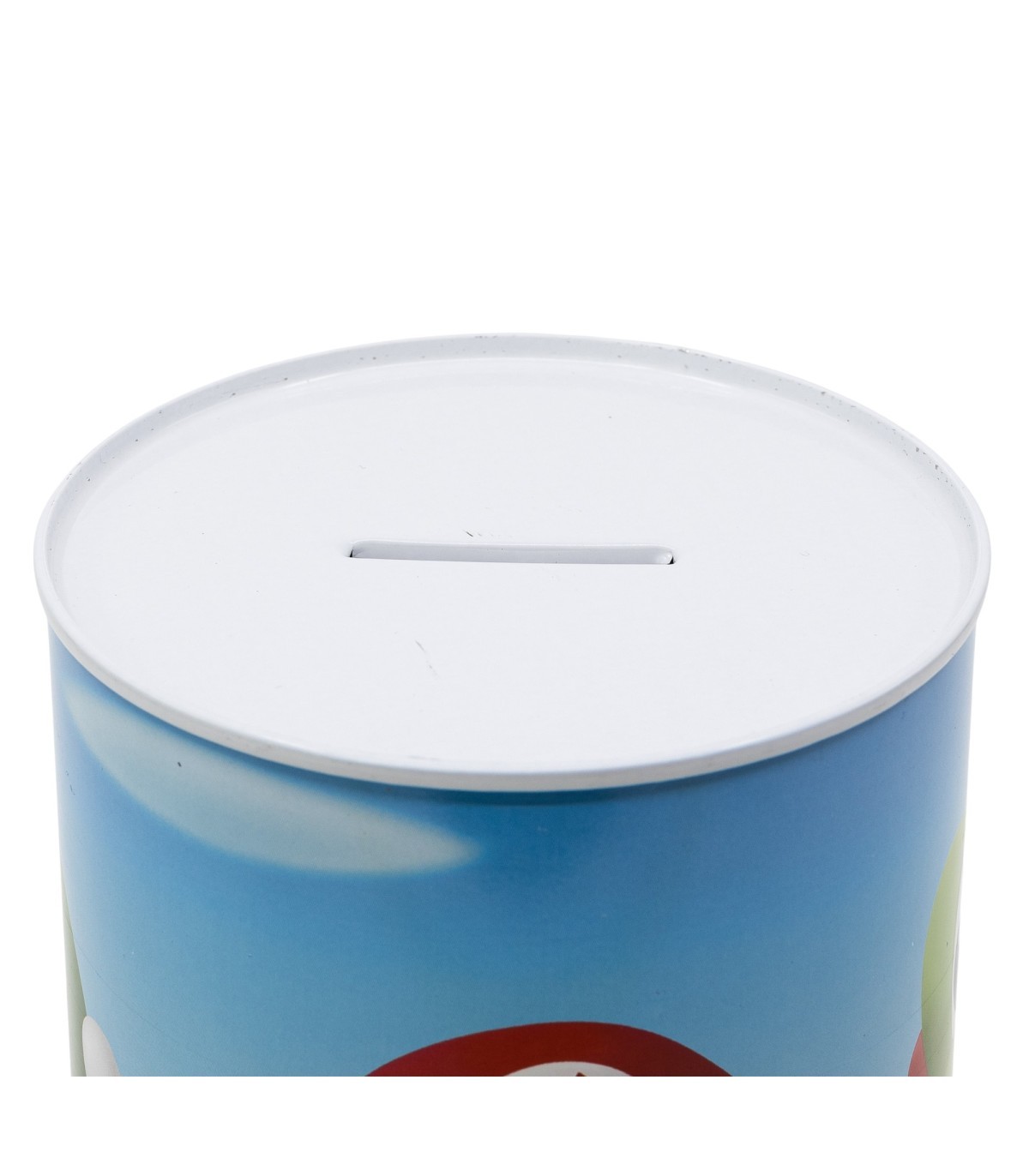 Práctica hucha infantil metálica para los ahorros de los más pequeños decorada con atractivos diseños basados en los personajes principales de sus series favoritas.