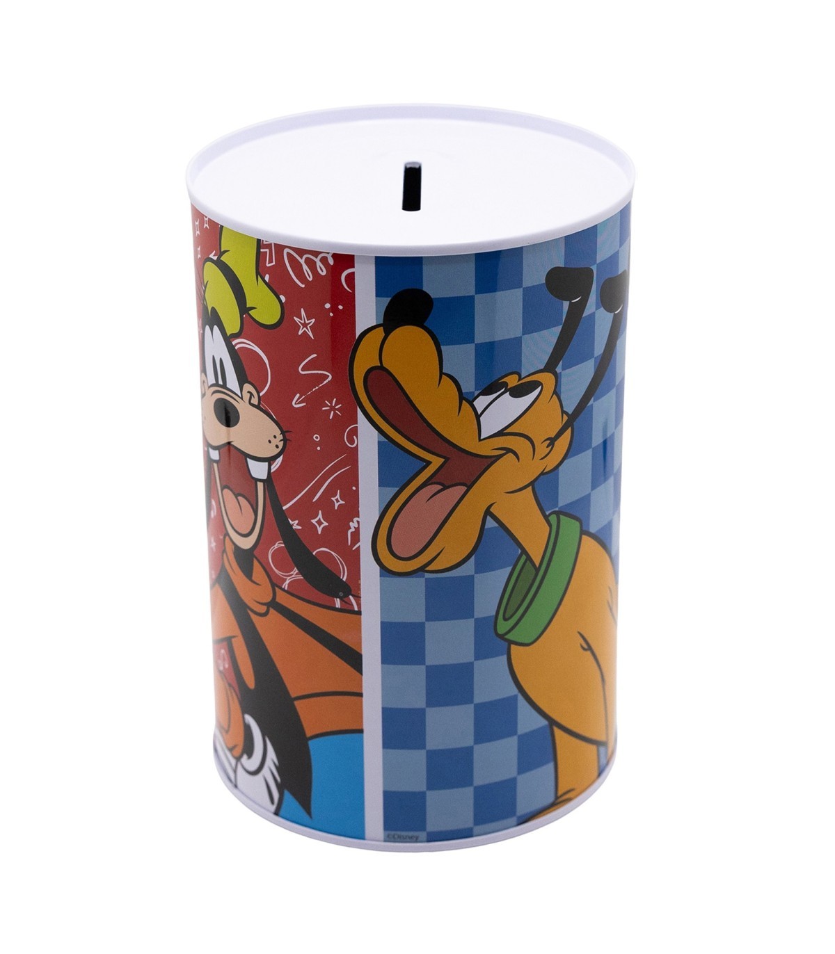 Práctica hucha infantil metálica para los ahorros de los más pequeños decorada con atractivos diseños basados en los personajes principales de sus series favoritas.