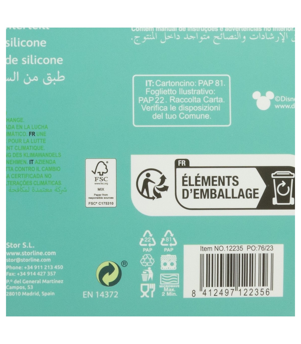 Para la seguridad de su bebé: ¡ADVERTENCIA! Usar siempre este producto bajo la supervisión de un adulto. Inspecciónelo atentamente antes de cada uso. Desechar en los primeros signos de daño o rotura. Limpieza, esterilización, almacenamiento y uso: Lave el producto antes del primer uso y después de cada uso. Limpie el producto y sus accesorios cuidadosamente con agua tibia y jabón. No utilice lejía ni otros productos de limpieza agresivos. Guarde en un lugar seco, libre de polvo. No exponga el producto a la luz solar directa ni a fuentes de calor, ni lo deje en desinfectante ("solución esterilizante") más tiempo del recomendado, ya que podría dañarse. Sustituya el producto si presenta grietas, deformaciones o cambios de color o textura. Úselo según las recomendaciones indicadas. Un uso indebido o los daños visibles pueden comprometer su idoneidad para el contacto con alimentos. Lea atentamente las instrucciones y conserve el embalaje para futuras consultas. Instrucciones de seguridad: Mantenga fuera del alcance de los niños los componentes que no estén en uso. No lo ate nunca a cordones, cintas, encajes o partes sueltas de la ropa. El niño podría estrangularse. Tenga especial cuidado al calentar en el microondas. No sobrecaliente el producto. Remueva siempre la comida caliente para asegurar una distribución uniforme del calor y pruebe la temperatura antes de servirla. Cumple con la norma EN 14372.