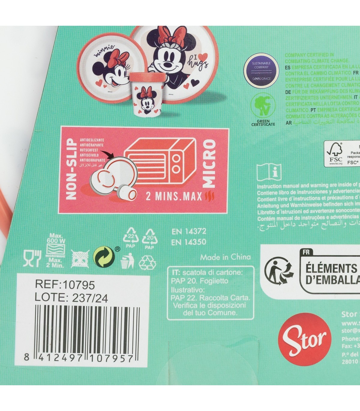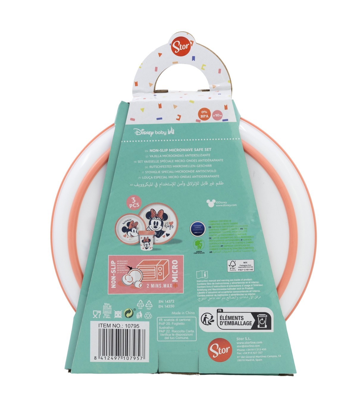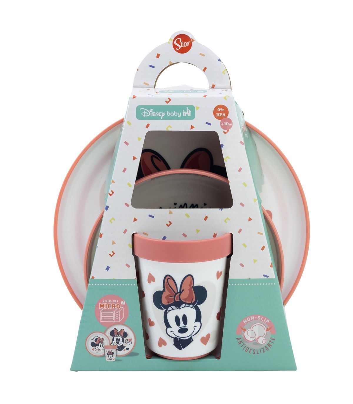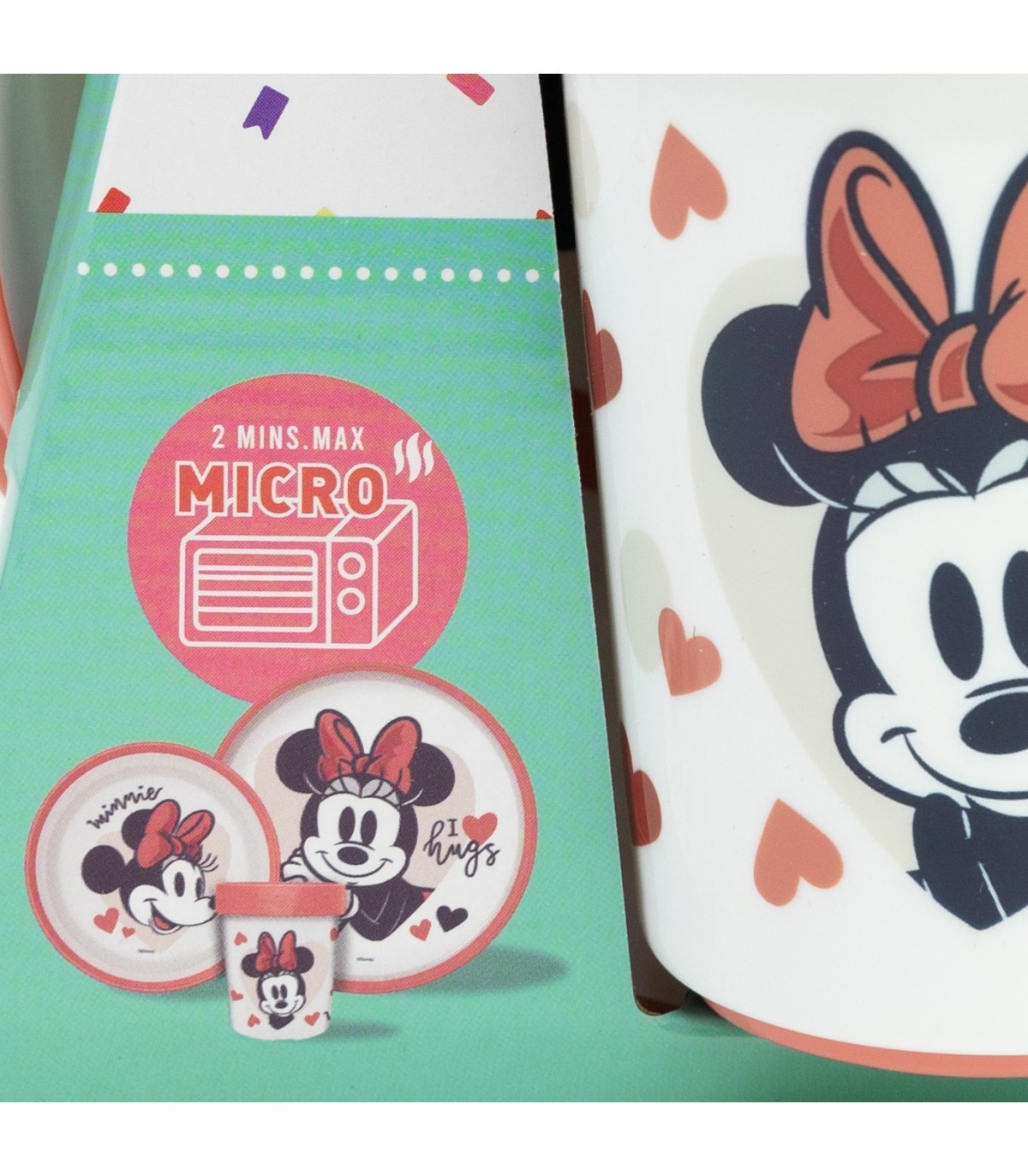SET 3 PCS VAJILLA PREMIUM BICOLOR ANTIDESLIZANTE MINNIE MOUSE HEART FULL