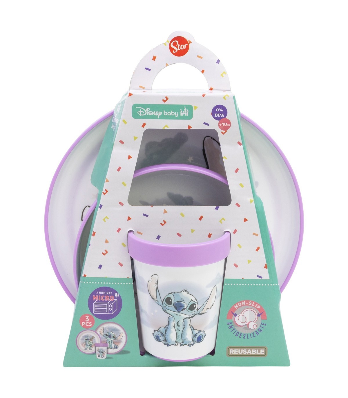 SET 3 PCS VAJILLA PREMIUM BICOLOR ANTIDESLIZANTE STITCH CUDDLE ME