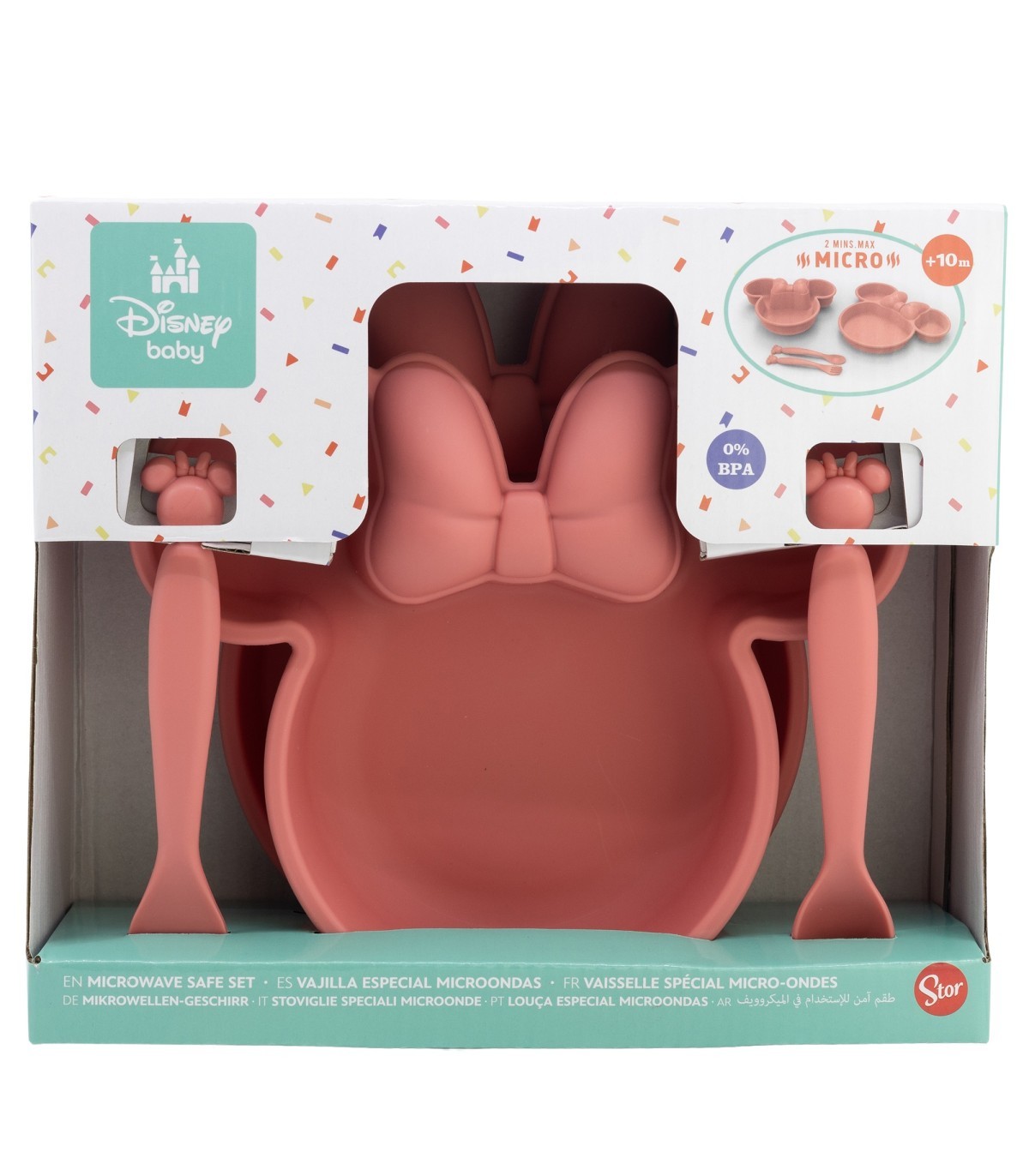SET TODDLER 4 PCS VAJILLA PP (PLATO, CUENCO Y CUBIERTOS) EN CAJA MINNIE MOUSE HEART FULL