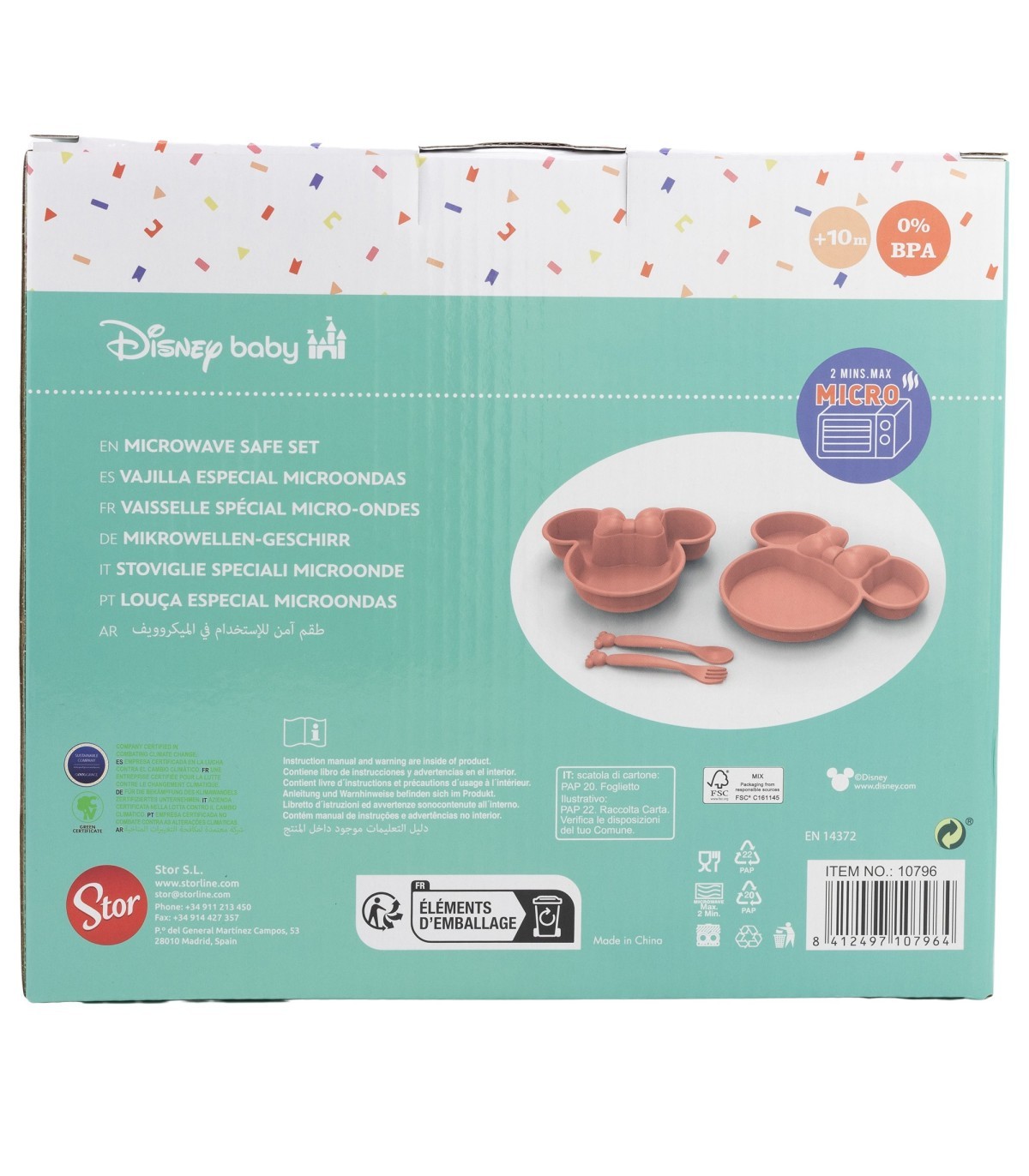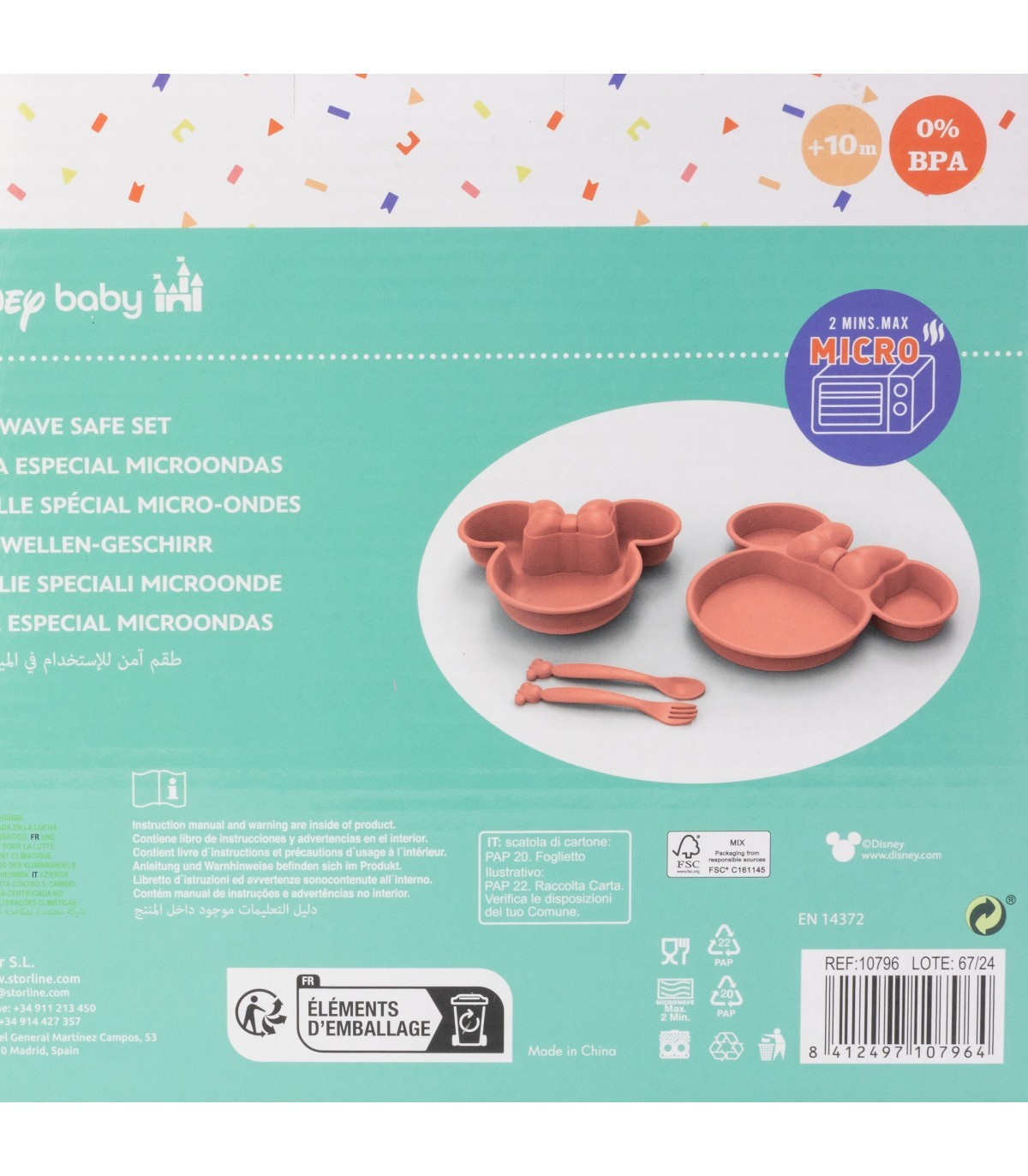 Para la seguridad de su bebé: ¡ADVERTENCIA! Usar siempre este producto bajo la supervisión de un adulto. Inspecciónelo atentamente antes de cada uso. Desechar en los primeros signos de daño o rotura. Limpieza, esterilización, almacenamiento y uso: Lave el producto antes del primer uso y después de cada uso. Limpie el producto y sus accesorios cuidadosamente con agua tibia y jabón. No utilice lejía ni otros productos de limpieza agresivos. Guarde en un lugar seco, libre de polvo. No exponga el producto a la luz solar directa ni a fuentes de calor, ni lo deje en desinfectante ("solución esterilizante") más tiempo del recomendado, ya que podría dañarse. Sustituya el producto si presenta grietas, deformaciones o cambios de color o textura. Úselo según las recomendaciones indicadas. Un uso indebido o los daños visibles pueden comprometer su idoneidad para el contacto con alimentos. Lea atentamente las instrucciones y conserve el embalaje para futuras consultas. Instrucciones de seguridad: Mantenga fuera del alcance de los niños los componentes que no estén en uso. No lo ate nunca a cordones, cintas, encajes o partes sueltas de la ropa. El niño podría estrangularse. Tenga especial cuidado al calentar en el microondas. No sobrecaliente el producto. Remueva siempre la comida caliente para asegurar una distribución uniforme del calor y pruebe la temperatura antes de servirla. Cumple con la norma EN 14372.