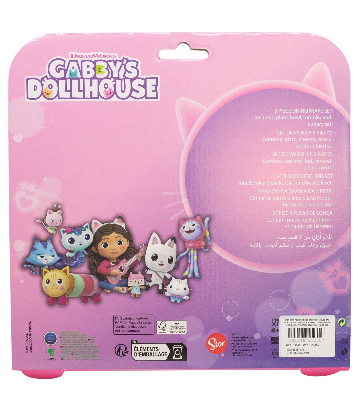SET MICRO 5 PCS (PLATO, CUENCO, VASO Y CUBIERTOS) EN CAJA GABBY\'S DOLLHOUSE BAB