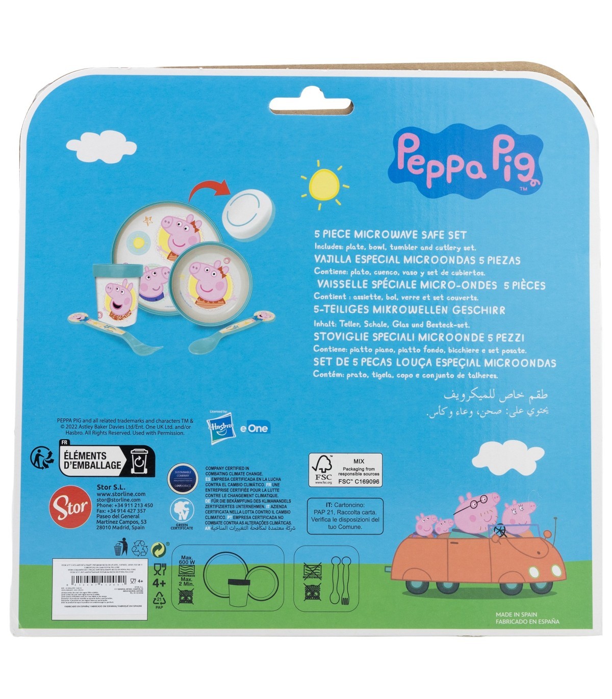 SET 5 PCS ANTIDESLIZANTE (PLATO, CUENCO, VASO Y CUBIERTOS) PREMIUM BICOLOR EN CAJA PEPPA PIG CORE