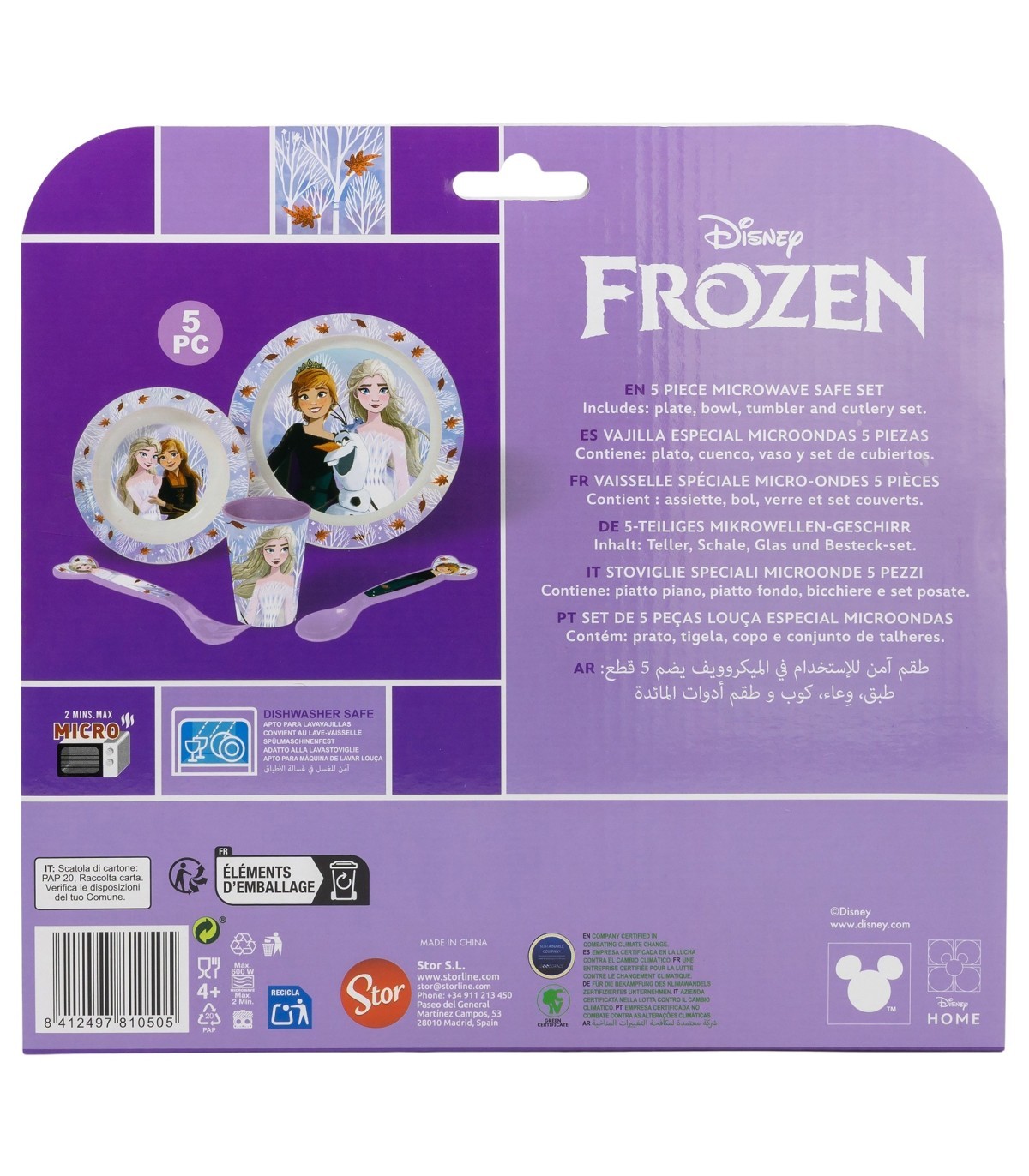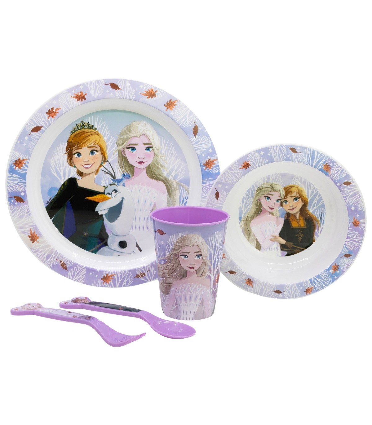 SET MICRO 5 PCS (PLATO, CUENCO, VASO Y CUBIERTOS) EN CAJA FROZEN AUTUM LEAVES