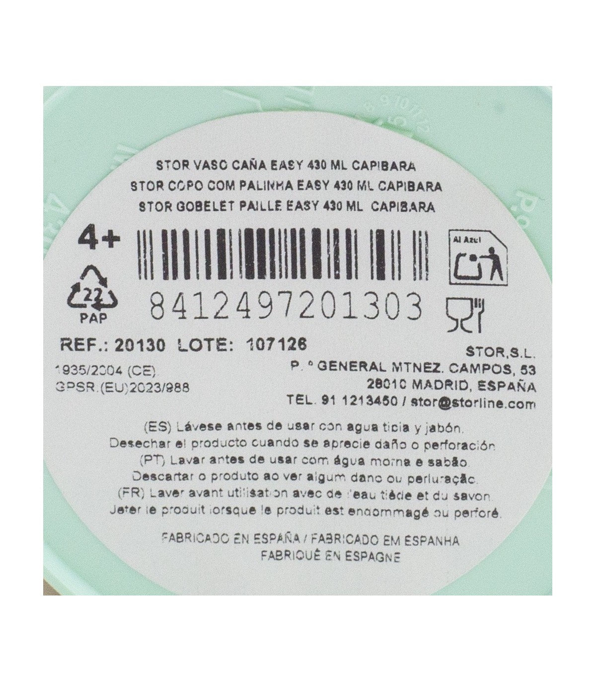 Vaso infantil reutilizable con tapa y pajita de 430 ml de Capibaras