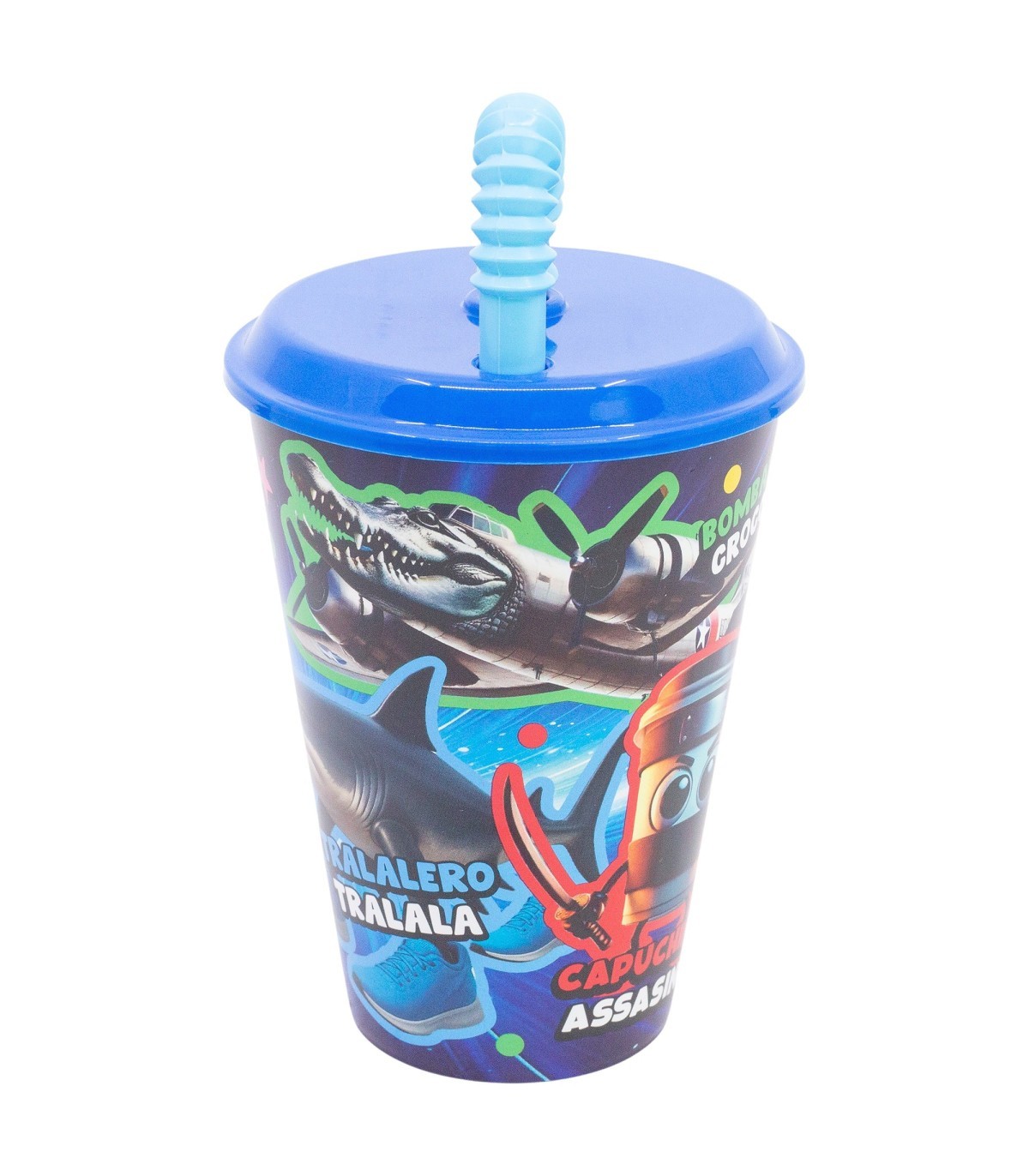 Vaso infantil reutilizable con tapa y pajita de 430 ml de Italian Brainrot
