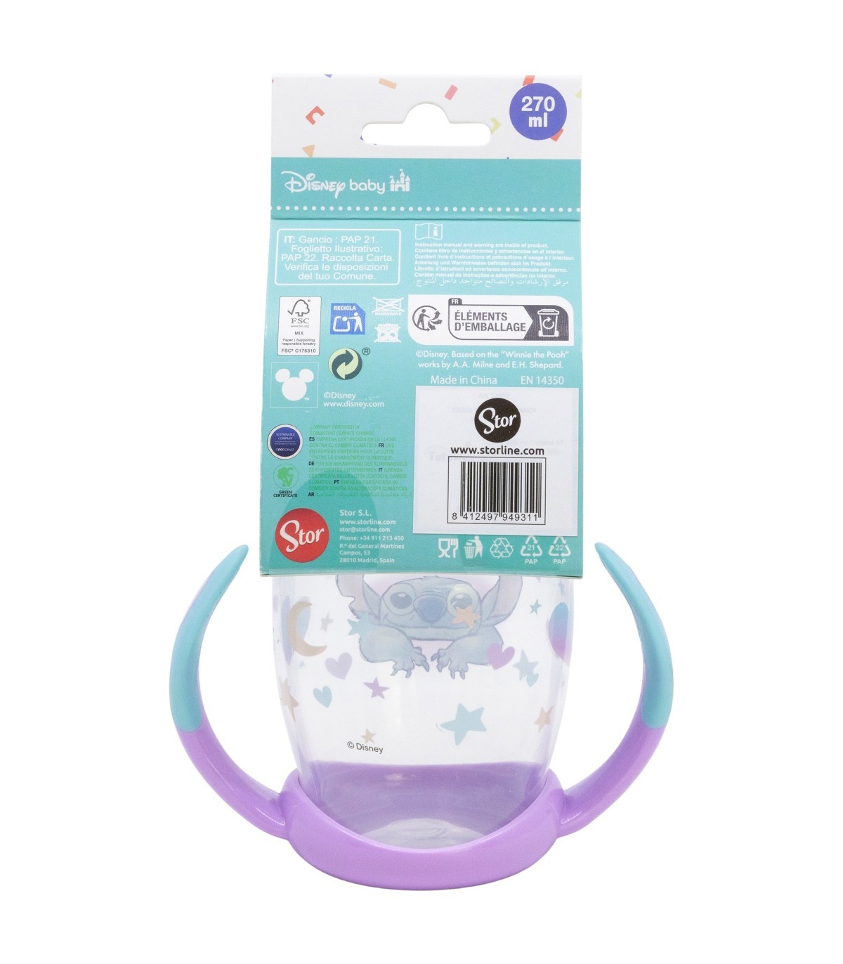 TAZA ENTRENAMIENTO FANCY 270 ML CON BOQUILLA DE SILICONA STITCH WITHYOU