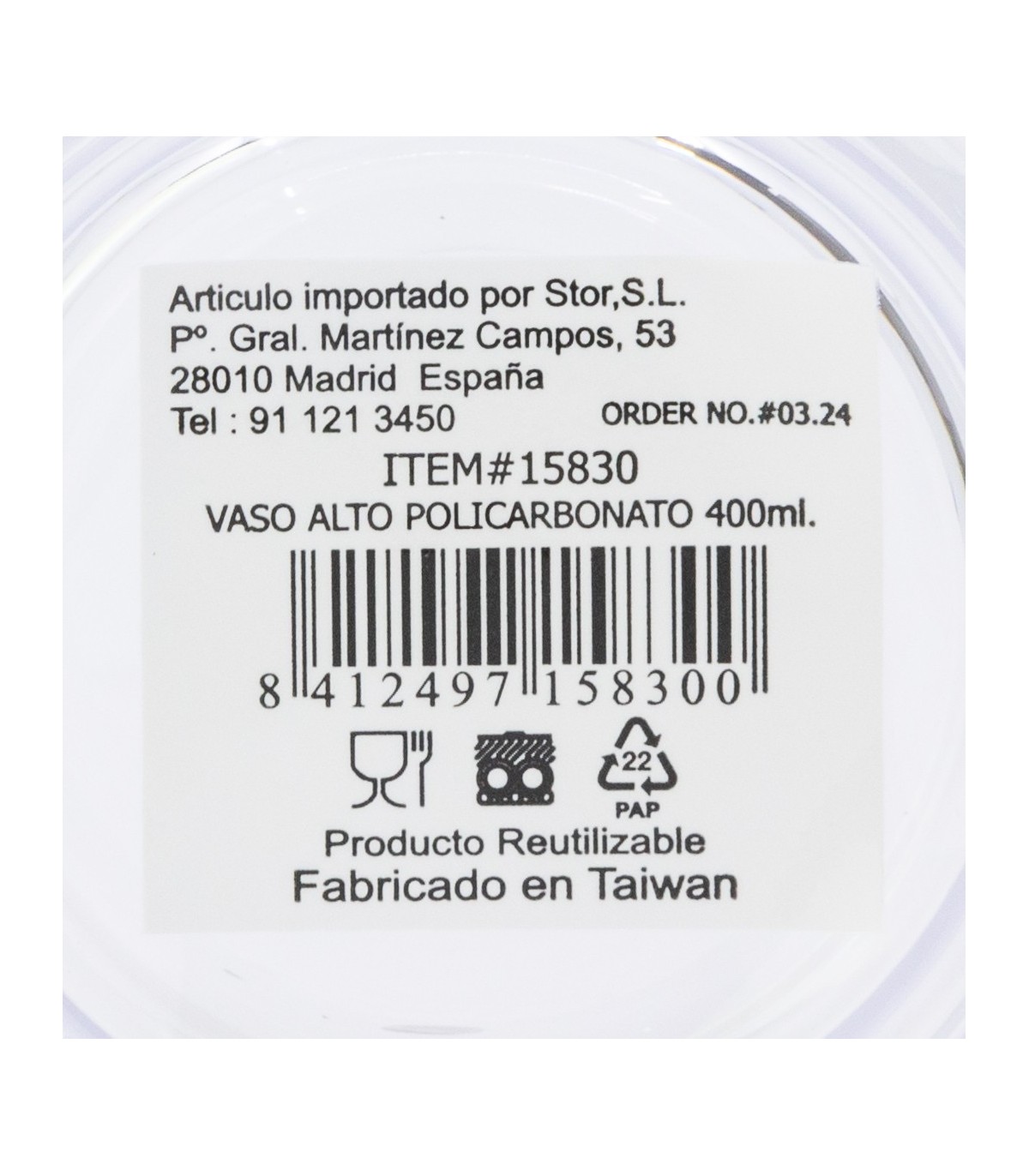 VASO ALTO POLICARBONATO 400 ML. | Marca Stor