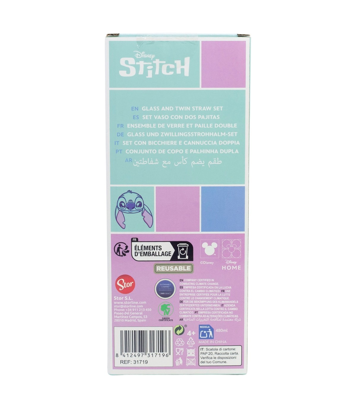 SET VASO CON DOS PAJITAS 480 ML STITCH ALOHA